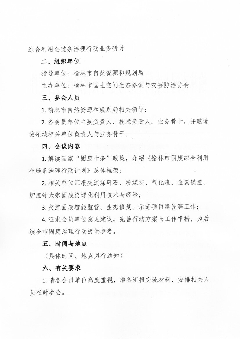 关于举办“榆林市固废综合利用全链条治理行动”业务研讨会的通知